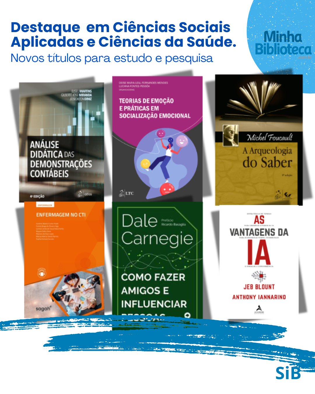 O acervo digital do Sistema de Bibliotecas (SiB) foi atualizado em março de 2026, com a inclusão de 130 novos títulos na plataforma Minha Biblioteca. A atualização contempla, especialmente, obras das áreas de Ciências Sociais Aplicadas e Ciências da Saúde, ampliando o suporte às atividades de ensino, estudo e pesquisa na Universidade.